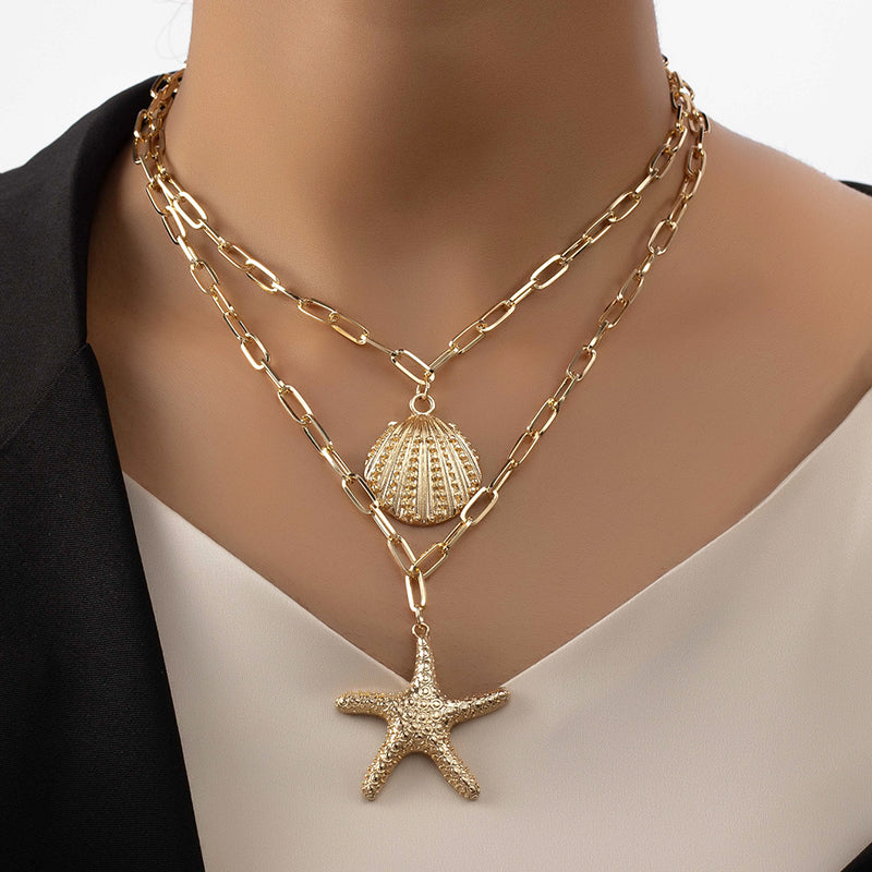 Sea Muse Layered Necklace – Starfish, Shell & Seahorse | Glisance